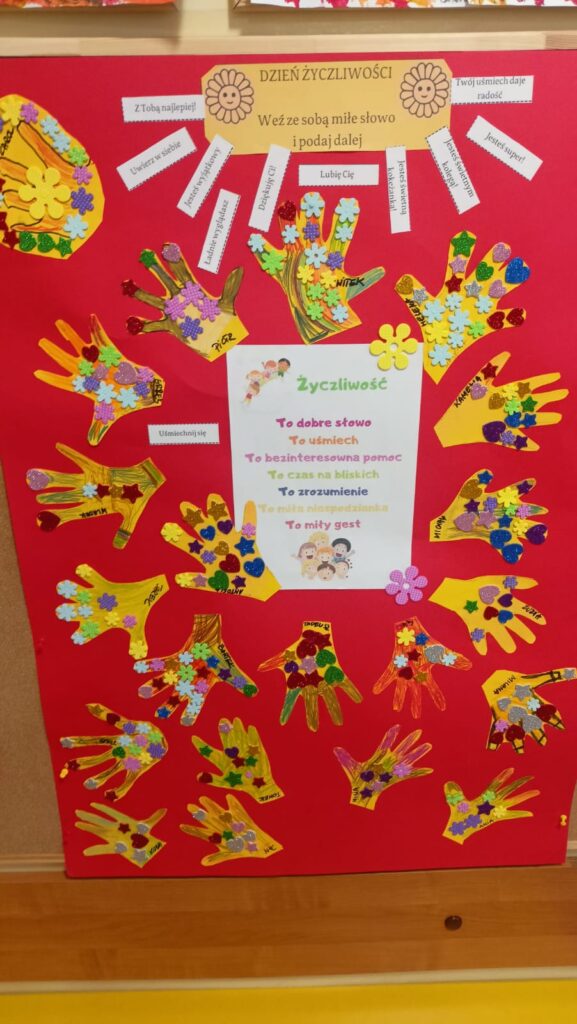 W naszym przedszkolu obchodziliśmy Dzień Życzliwości i Pozdrowień! Przedszkolaki z uśmiechem i dobrym słowem dzieliły się życzliwością z rówieśnikami i nauczycielami. Były kolorowe kartki z pozdrowieniami, dekoracja drzwi, miłe gesty i wspólne zabawy, które przypomniały nam, jak ważne jest okazywanie sobie wzajemnej życzliwości każdego dnia.