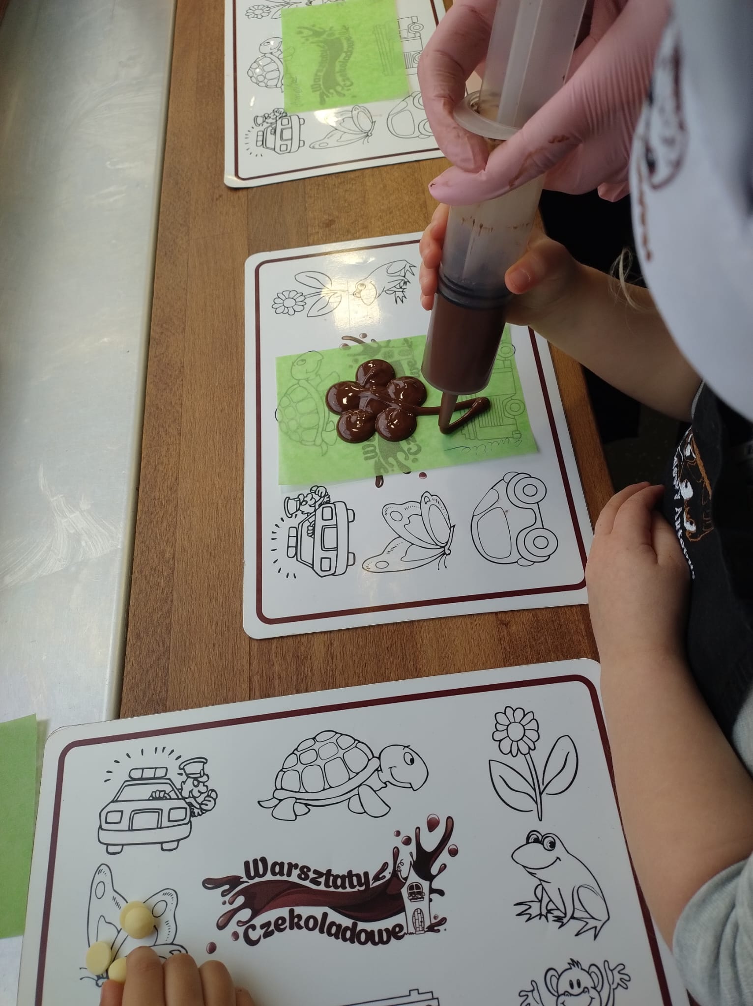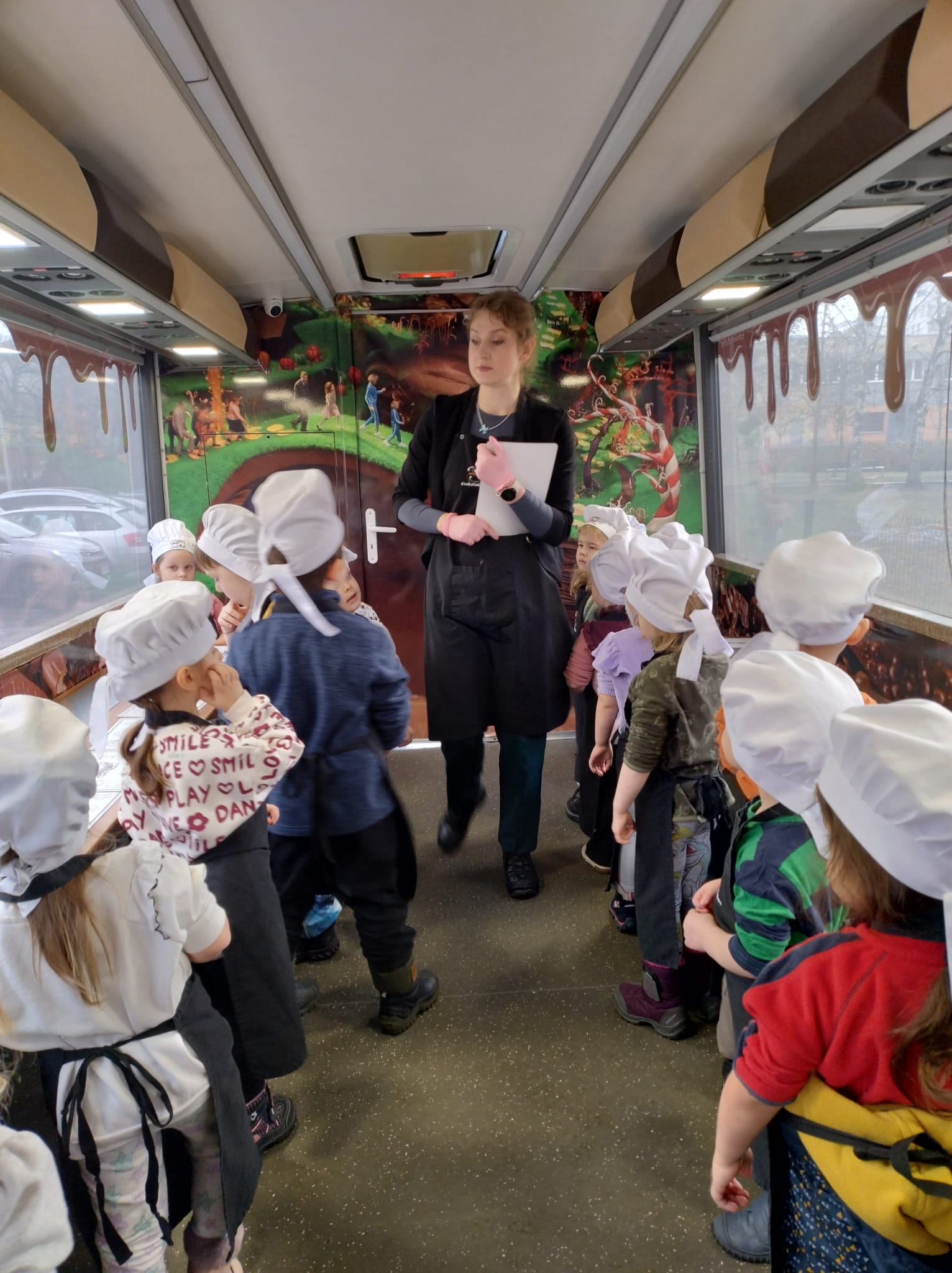oraz dowiedziały się, jak powstaje czekolada – od ziaren kakaowca aż do gotowej słodkiej tabliczki. Największą atrakcją było jednak to, że każde dziecko mogło własnoręcznie przygotować i ozdobić swoją tabliczkę czekolady