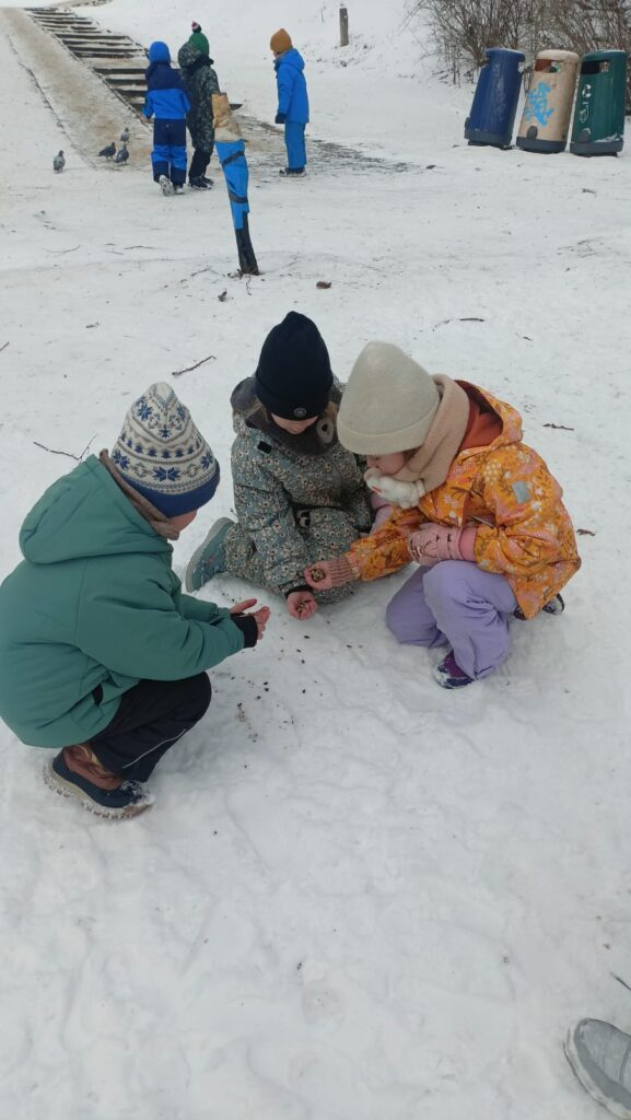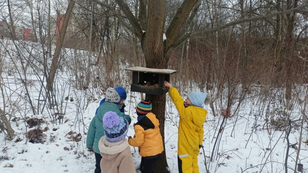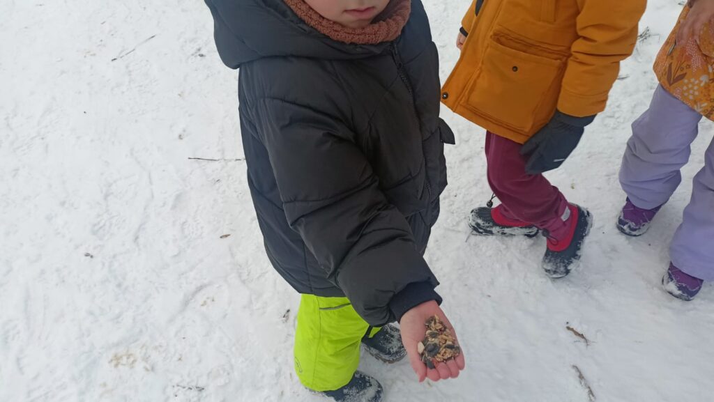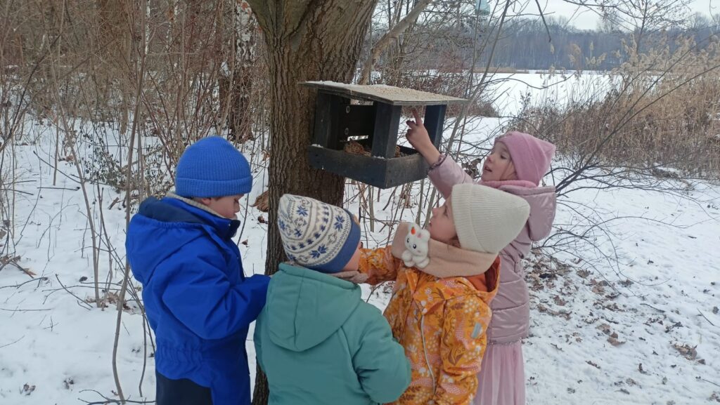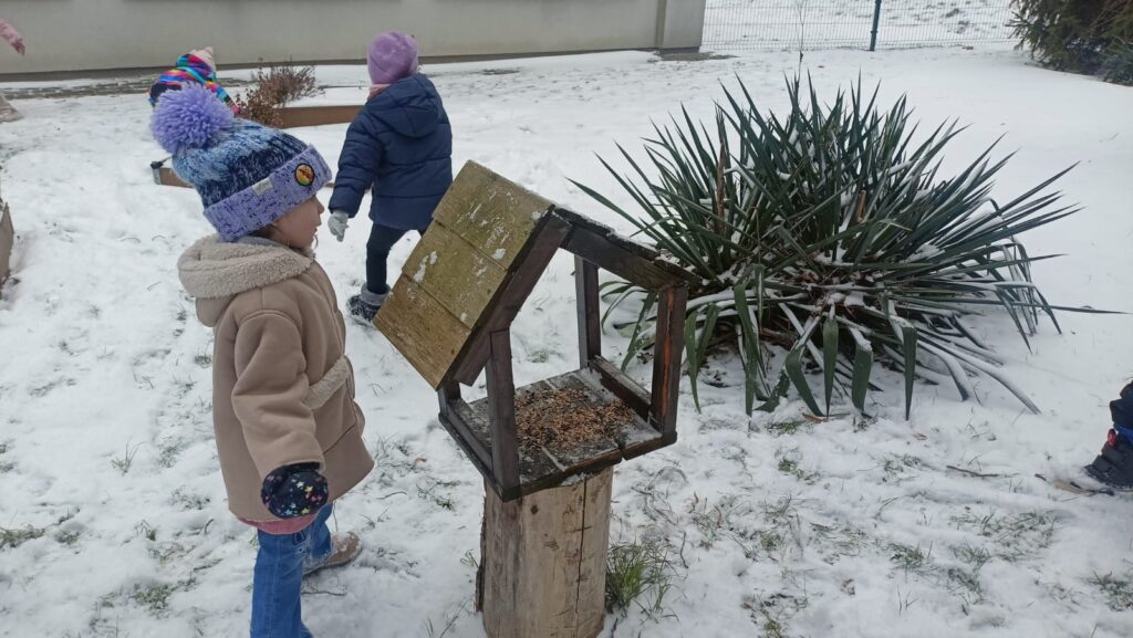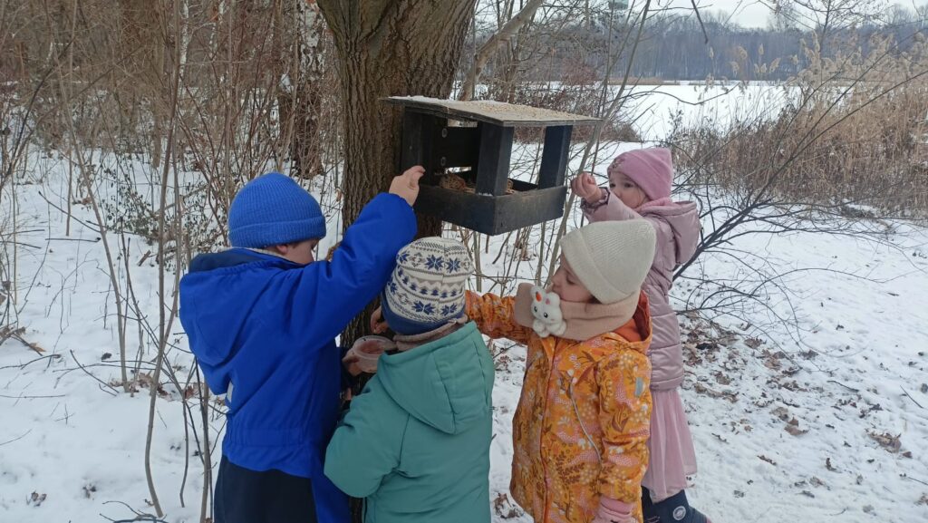 Biedronki dokarmiają ptaki na Dolinie Trzech Stawów i przedszkolnym ogrodzie. Dzieci uzupełniły karmniki obserwując skrzydlatych gości, którzy bardzo chętnie przylatywali na posiłek. Była to okazja do rozmowy na temat dokarmiania ptaków w tak trudnym dla nich zimowym czasie.Bardzo dziękujemy rodzicom za zakup pożywienia dla ptaków.