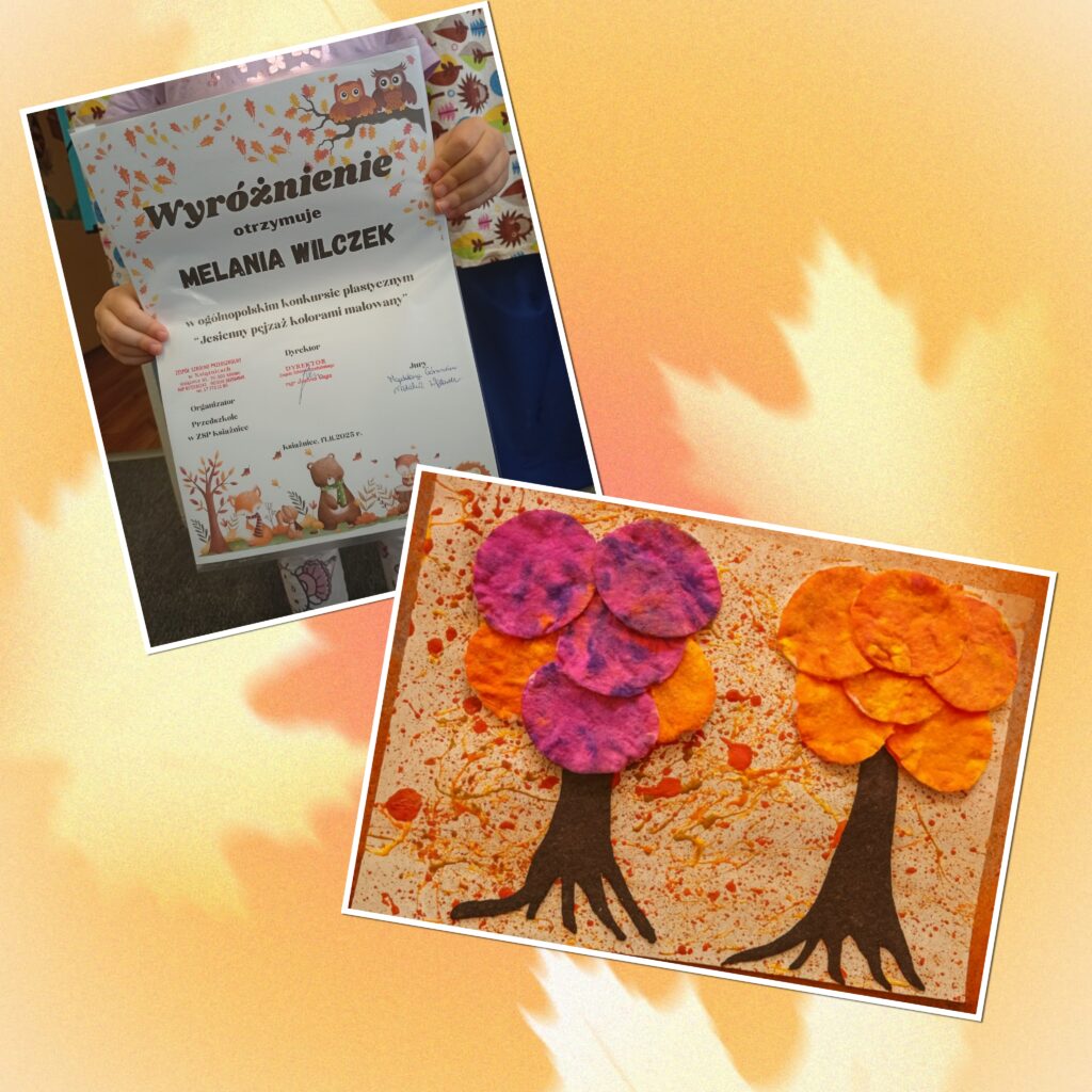 🎨🍁 Melania z grupy JEŻYKI została WYRÓŻNIONA w Ogólnopolskim Konkursie Plastycznym! 🎉🦔