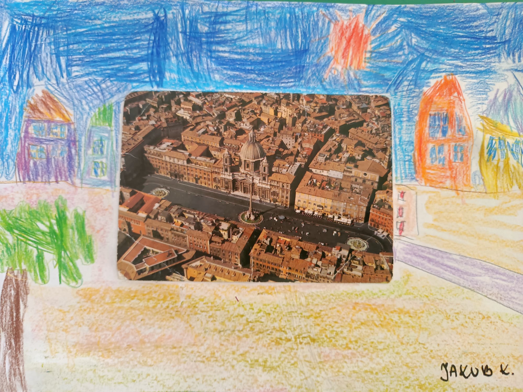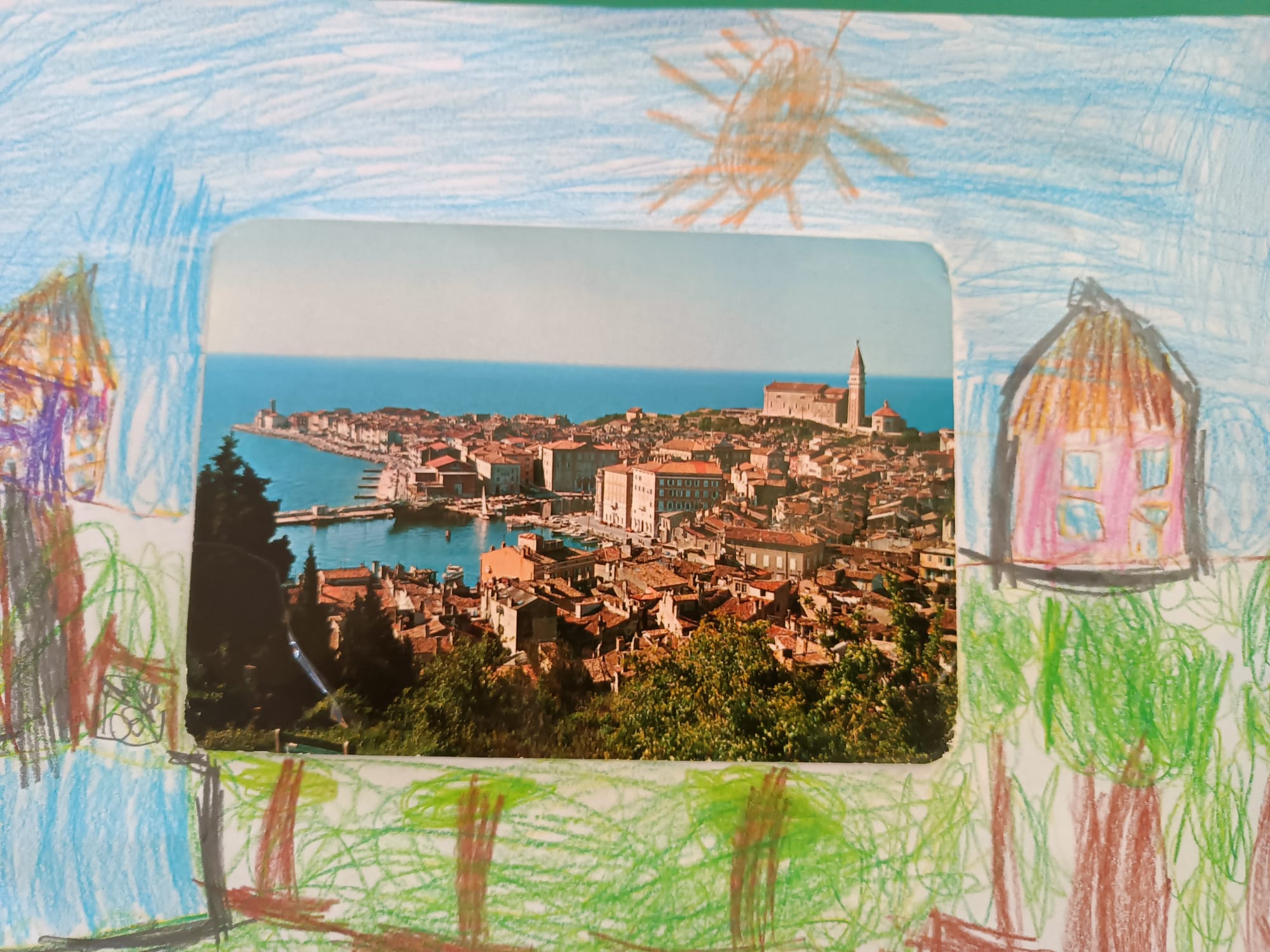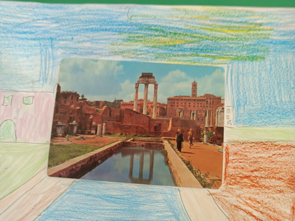 W grupach Krasnale i Biedronki dzieci wzięły udział w niezwykłym zadaniu plastycznym. Punktem wyjścia stały się pocztówki z różnorodnymi ilustracjami, które mali artyści mieli za zadanie „ożywić” i twórczo rozbudować – dorysowując dalszą część obrazu oraz dopowiadając własną historię.