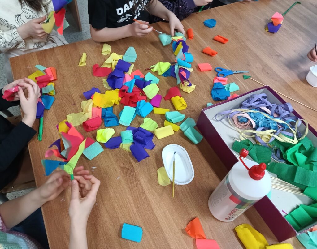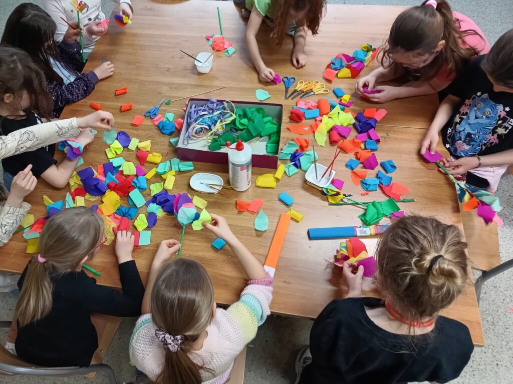 Wielkanocne palmy 31 marca, 2026 W świetlicy szkolnej podczas zajęć plastycznych dzieci wykonały kolorowe palmy z bibuły.
