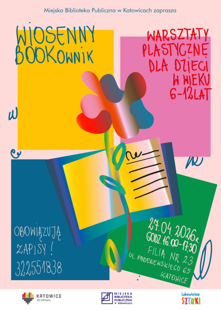 „Wiosenny Bookownik” 20 kwietnia, 2026 Zapraszamy na warsztaty plastyczne organizowane przez Miejską Bibliotekę Publiczną nr 23 w Katowicach.